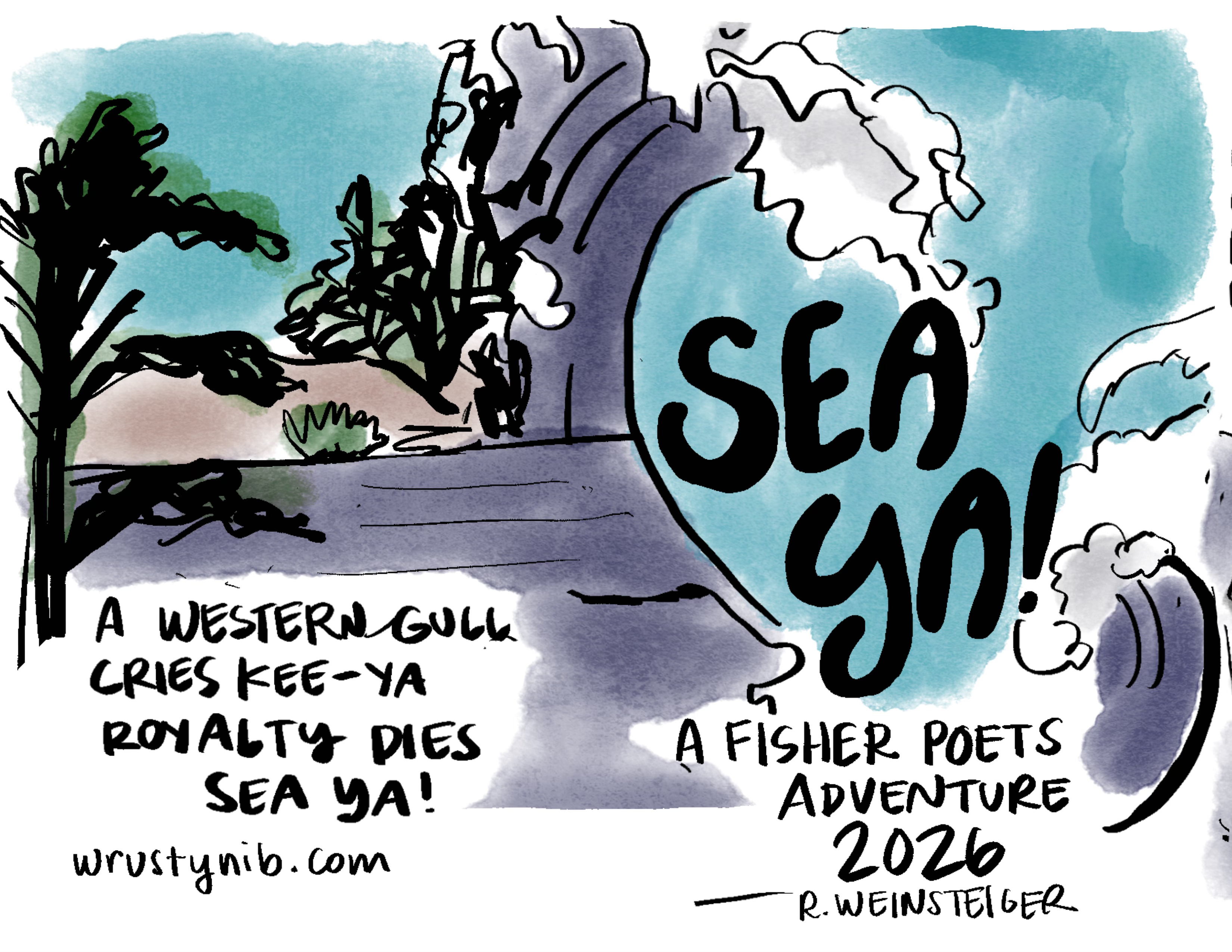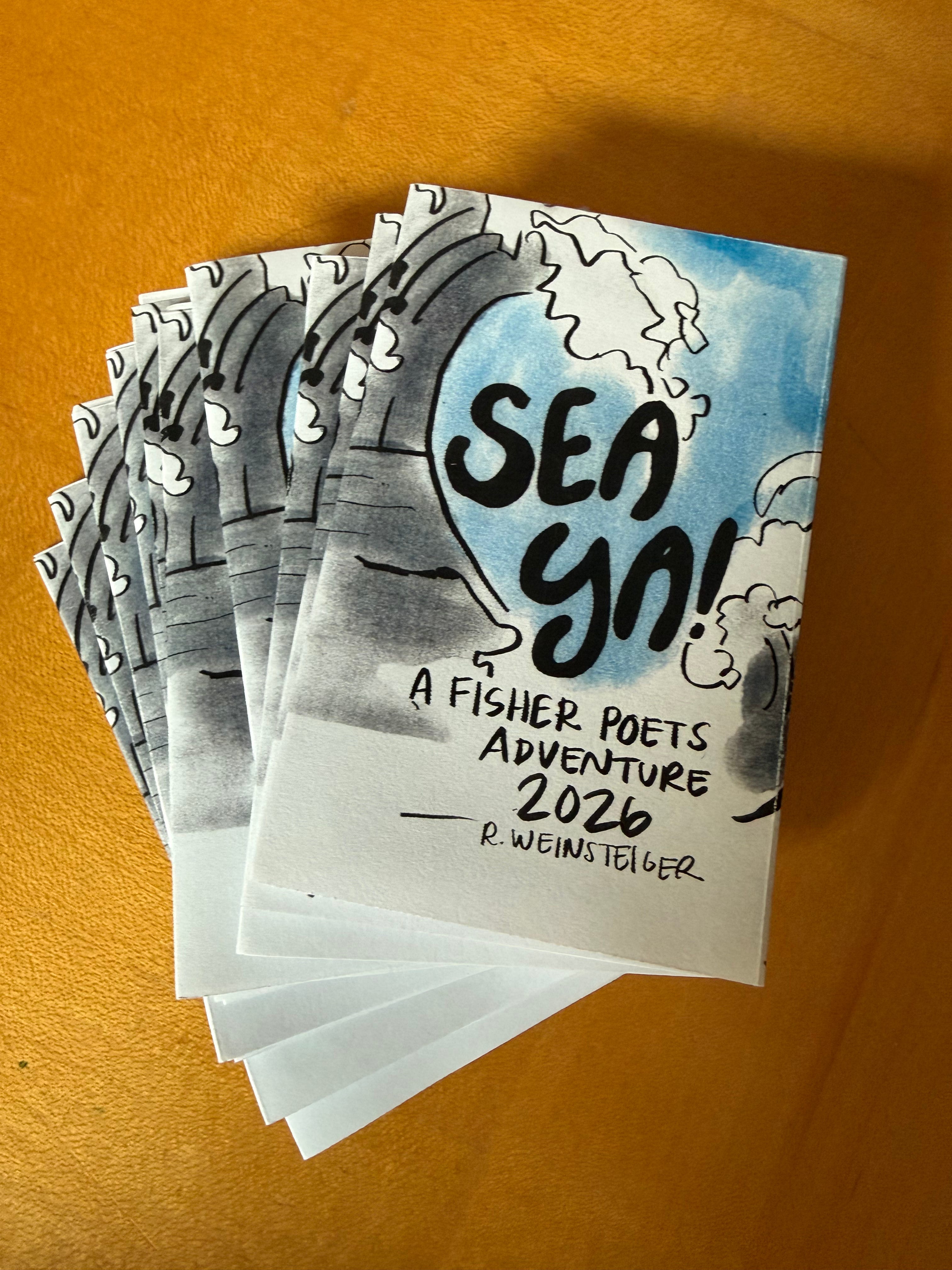 Just as I did the last time I attended Fisher Poets in 2024, I wrote a poem. But neither time was I able to show up to the late-night contest to deliver it to an audience. This year I turned the poem into a two-track comic mini-zine for my Yearlong Comic Intensive Course with the Sequential Artist Workshop.
